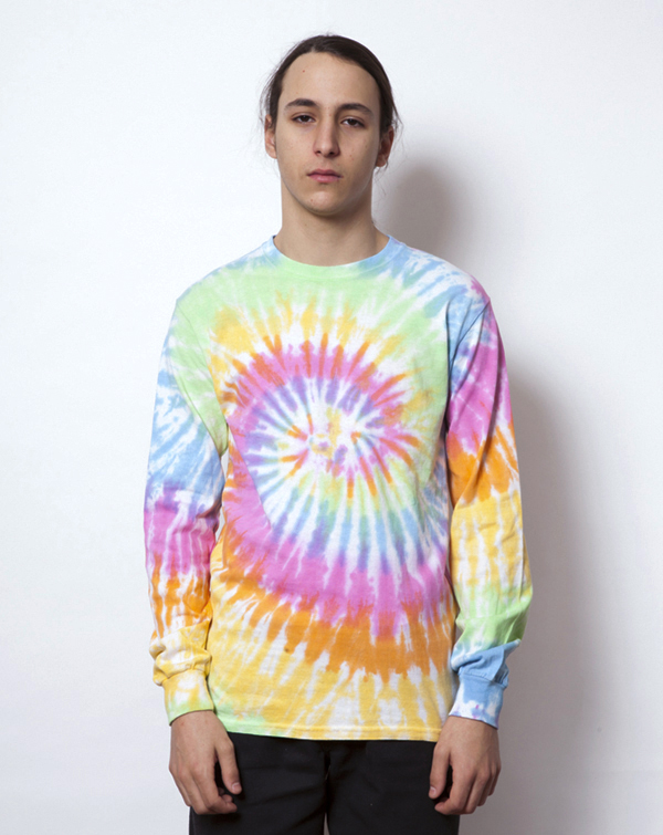 待望のロングスリーブタイダイTシャツが登場。ボディは、袖リブ付きTシャツを使用しています。